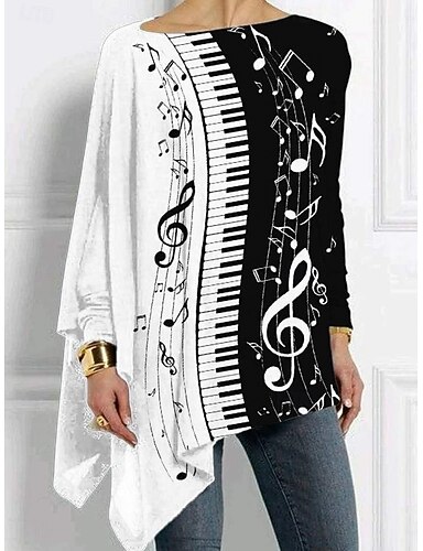 Mujer Camiseta Estampado Asimétrico Graphic Geométrico Abstracto Vintage Elegante Casual Manga Larga Cuello Barco Tops largos Diario Negro Blanco Amarillo Rojo Primavera Otoño