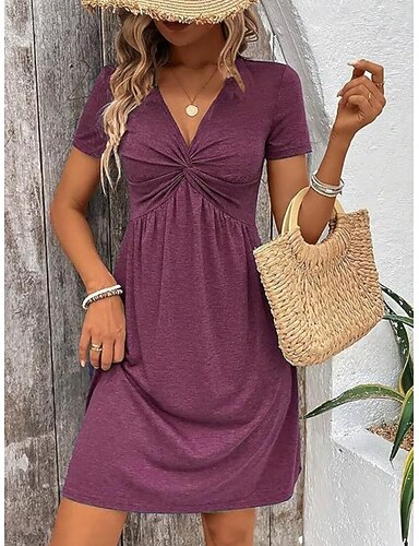 Mujer Vestido hasta la Rodilla Vestido informal Vestido de una línea Elegante Moda Moderno Exterior Vacaciones Noche Ajuste regular Plano Manga Corta Escote en Pico Azul Piscina Negro Morado Verde