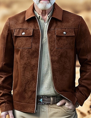 Hombre Chaqueta de gamuza sintética Chaqueta casual Vacaciones Diario Resistente al Viento Mantiene abrigado Bolsillo Primavera Otoño Plano Moda Clásico Diseño Regular Negro Caqui Chaquetas
