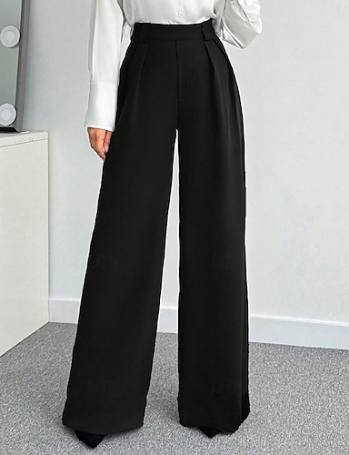 Mujer Pantalones pantalones de traje Vacaciones Moda Casual / Diario Longitud total Alta cintura Color sólido Plano Comodidad Suave Transpirable Rígido Ropa de calle Negocio Trabajo Negro Verano