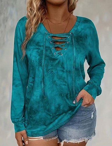 Mujer Blusa Retazos Tie-dye Elegante Casual Manga Larga Escote en Pico Tops regulares Diario Noche Fin de semana Azul Piscina Negro Rosa Azul Marino Morado Verano Primavera Otoño