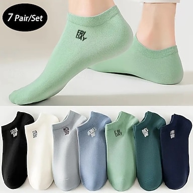 Hombre 7 pares Paquetes múltiples Calcetín Calcetines para correr Calcetines informales Multi Color Color Letra Vacaciones Deporte Diario Básico Medio Primavera Otoño Moda Casual