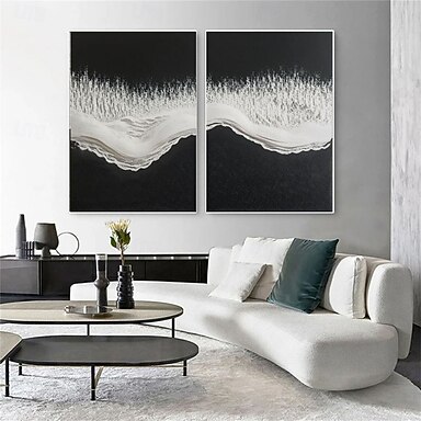 Pintura al óleo hecha a mano, lienzo, arte de pared, decoración, blanco y negro, minimalista, abstracto para decoración del hogar, marco estirado, pintura colgante/pintura enrollada sin marco, sin