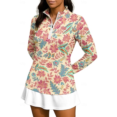 Mujer Flores Camisas Camisa deportiva Camisas de polo Camiseta de tenis Manga Larga Cremallera Floral UPF50+ Resistente a los rayos UV Alta elasticidad Dispersor de humedad Transpirable Tenis Golf