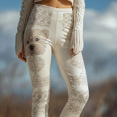 Mujer Pantalones de lana Polainas Vacaciones Vintage Estilo Étnico Longitud total Alta cintura Graphic Leopardo Estampado Mantiene abrigado Confortable Cómodo Elástico Casual Diario Exterior Negro