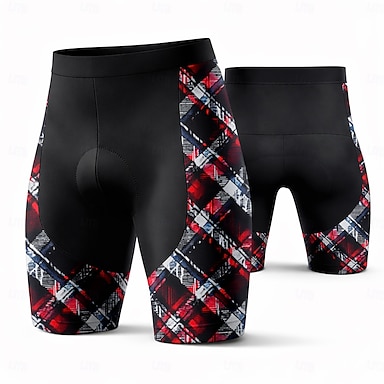 Pantalones cortos de ciclismo para hombre con estampado de cuadros negros y rojos, con almohadilla 3D, transpirables, de secado rápido, que absorben la humedad, ideales para triatlón y ciclismo al