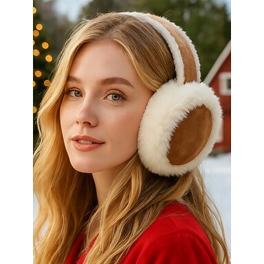 Orejeras navideñas de piel sintética para mujer, diseño plegable, diadema multimaterial para invierno, accesorio acogedor y elegante para climas fríos.