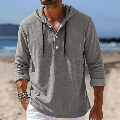 Hombre Camisa Camisa casual Camisa de Pana Azul Piscina Blanco Azul Marino Gris Manga Larga Plano Con Capucha Casual Diario Con Capucha Ropa Vintage Moda Ropa de calle Diario