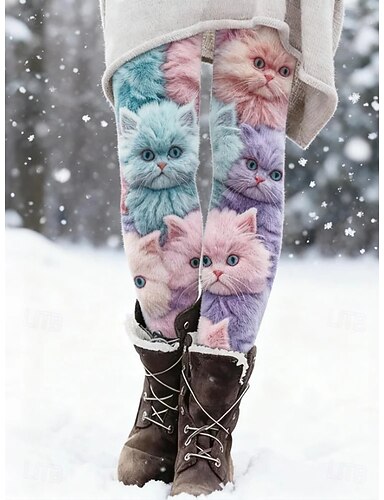 Mujer Polainas Vacaciones Vintage Moda Longitud total Alta cintura Graphic Animal Gato Impresión 3D Secado rápido Transpirabilidad Suave Elástico Diario Hogar Exterior Azul Piscina Otoño Invierno