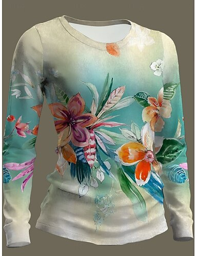 Mujer Camiseta Estampado Floral Graphic Plantas Moda Clásico Casual Manga Larga Cuello Barco Tops regulares Diario Fin de semana Azul Piscina Rojo Verde Trébol Verano Primavera