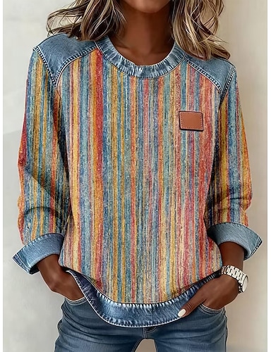 Camiseta de mujer estampado casual tops regulares impresión diaria naranja primavera otoño