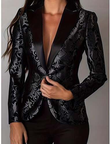 Mujer chaqueta Cómodo Botones Moda Casual Floral Fiesta Formal Ropa Cotidiana Noche Regular Cuello Vuelto Ajuste regular Manga Larga Ropa de calle Negro Primavera Otoño