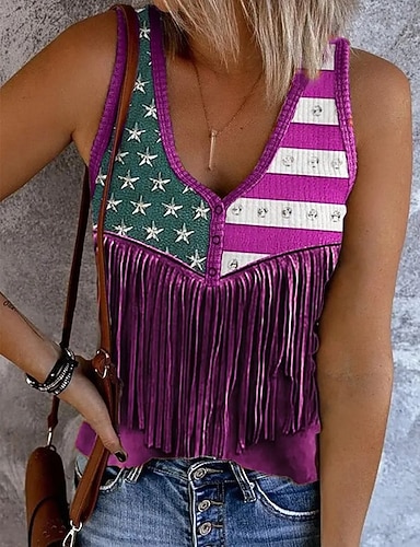día de la independencia americana Mujer Camisa Blusa Retazos Graphic Bandera Abstracto Moda Elegante Clásico Manga Larga Escote en Pico Tops largos Diario Festivos Noche Azul Piscina Rojo Morado