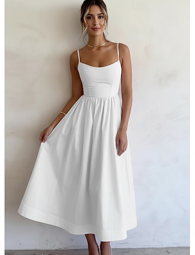 Mujer Vestido Midi Vestido informal Vestido de una línea Vestido de verano Elegante Moda Moderno Exterior Vacaciones Noche Ajuste regular Plano Sin Mangas Correas Azul Piscina Blanco Rosa Morado
