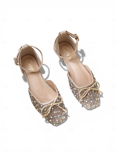 Sandalias planas de mujer con pedrería, zapatos de vestir sin cordones con punta abierta para fiestas nocturnas y vacaciones. &Aspecto de una tarde de verano