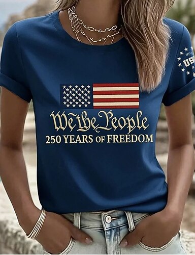 Día de la Independencia Aniversario Americano Camiseta Patriótica de Mujeres Estampado Gráfico Letra Bandera Americana Estilizada Clásica Casual de Manga Corta Cuello Redondo Regular Tops Diarios