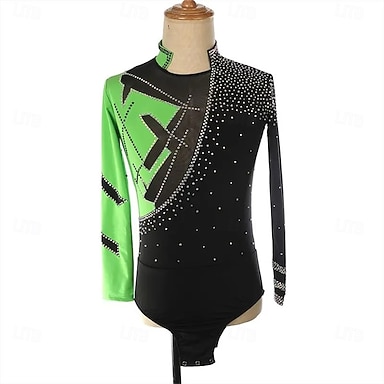 Top de patinaje artístico Hombre Chico Patinaje Sobre Hielo Tops Negro verde Retazos Licra Alta elasticidad Entrenamiento Competición Ropa de Patinaje Clásico Cristal / Strass Manga Larga Patinaje