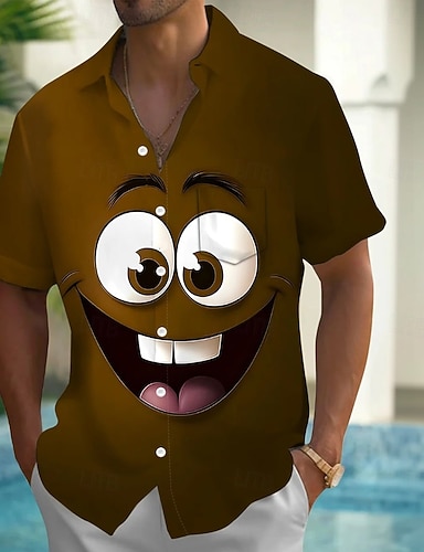 Hombre Caricatura Gracioso Cara de la sonrisa Camisa Camisa de verano Abotonar la camisa Manga Corta Moda informal Exterior Vacaciones Uso Diario Verano Primavera Cuello Vuelto Impresión 3D camisas