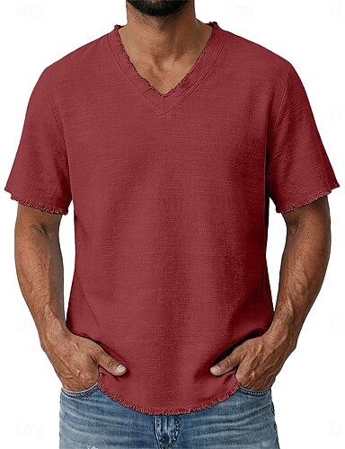 Hombre Camiseta superior Camiseta de lino Mangas cortas Escote en Pico Verano Plano Moda Design Básico Suave Puro Crudo Casual Playa Vacaciones Azul Piscina Blanco Rosa Camiseta superior para hombre