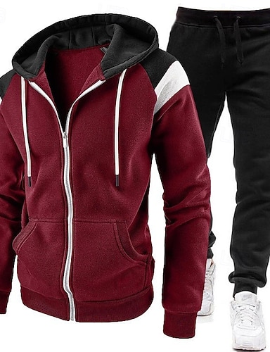 Hombre Tracksuit Conjunto de atuendo Conjunto de sudaderas con capucha Sudadera Exterior Diario Deportes Bolsillo Correa Bloque de color Negro Rojo Azul Marino Poliéster Ropa de Deporte Moda Ropa de