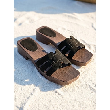 Sandalias planas beige para mujer con suela de veta de madera: zapatos informales con punta abierta y cortes para vacaciones en la playa y resorts.