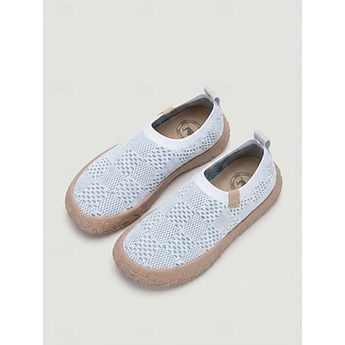 Zapatillas blancas transpirables de punto sin cordones para mujer: calzado ligero y acolchado para caminar, zapatos planos flexibles y cómodos para viajar, trabajar y para uso diario. &actividades al