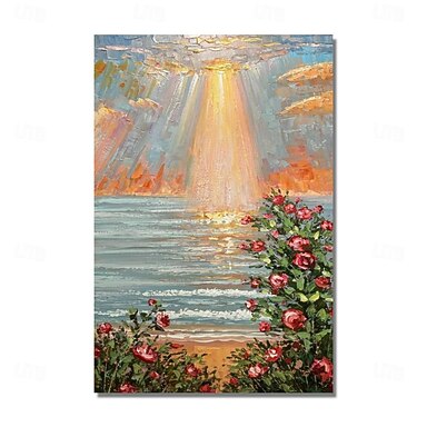 Pintura al óleo hecha a mano, arte de pared pintado a mano, paisaje marino, pintura en lienzo, decoración del hogar, marco estirado listo para colgar