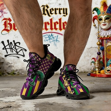 Zapatillas atléticas de colores de Mardi Gras para hombres zapatos de correr ligeros y absorbentes de impactos para eventos de carnaval desfiles caminatas al aire libre viajes y ropa deportiva casual