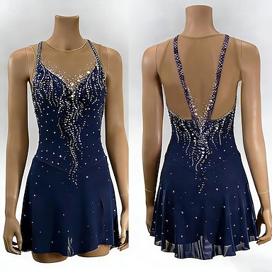 Vestido de patinaje artístico Mujer Patinaje Sobre Hielo Vestidos Azul marinero Retazos Espalda Abierta Elástico Entrenamiento Competición Ropa de Patinaje Clásico Cristal / Strass Sin Mangas