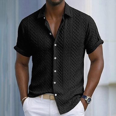 Hombre Camisa Camisa de verano Abotonar la camisa Camisa Jacquard Cardigan Negro Color Caquí Café Manga Corta A Rayas Moda Diseño Casual Ropa Cotidiana Agujero Ropa Moderno Contemporáneo moderno