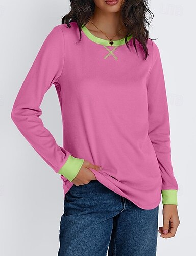 Mujer Camiseta Camiseta superior Retazos Bloque de color Elegante Moda Clásico Manga Larga Cuello Barco Tops regulares Diario Noche Fin de semana Azul Piscina Blanco Azul Marino Marrón Rosa Brillante