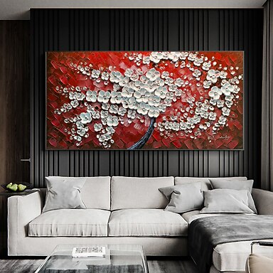 Pintura al óleo hecha a mano lienzo arte de la pared decoración rosa original árbol en flor decoración del hogar con marco estirado sin pintura de marco interior