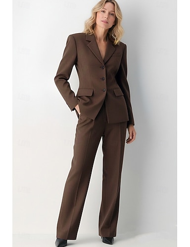 Mujer Trajes de 2 piezas Ajustado / Acampanado Coordinados Oficina Trabajo Formal Tejido elástico Elegante Negocios Sencillo Manga Larga Muesca Ronda Solapa pico Botonadura Simple