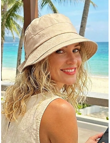 Sombrero de pescador informal de algodón para mujer, sombrero de sol elástico ajustable en varios colores para vacaciones en la playa, uso diario informal, viajes y estilo veraniego al aire libre.
