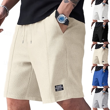 Hombre Waffle Pantalón corto Pantalones cortos de verano Pantalones cortos de playa Pantalones cortos casuales Correa Cintura elástica Color sólido Comodidad Longitud de la rodilla Diario Exterior