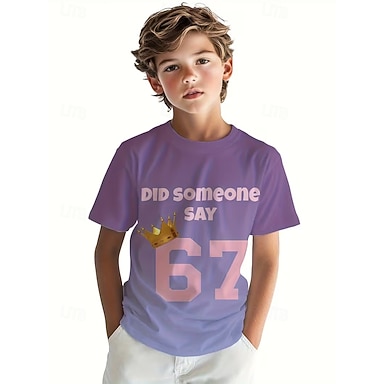 Chico 3D Graphic Jerga divertida 67 Camiseta Manga Corta Impresión 3D Verano Primavera Deportes Moda Ropa de calle Niños 4-12 años Cuello Barco Casual Diario Exterior Ajuste regular
