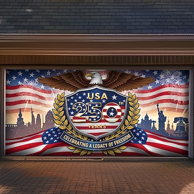 4 de julio de 2026 250° Día de los Caídos Cubierta de Puerta de Garaje Gran Fondo Colgante Bandera Americana Vintage 3D Fiesta Patriótica Al Aire Libre Fondos de Tiro Decoración de Hogar
