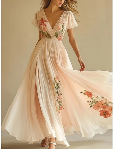 Mujer Vestido maxi Vestido informal Vestido de una línea Vestido de flores Elegante Moda Moderno Exterior Vacaciones Noche Ajuste regular Floral Manga Corta Escote en Pico Azul Piscina Rosa Vino