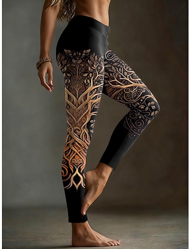 Mujer Polainas Leggings cómodos Vacaciones Vintage Estilo Étnico Longitud total Alta cintura Graphic Estampado Cómodo Elástico Casual Diario Vacaciones Negro Primavera Pitillo
