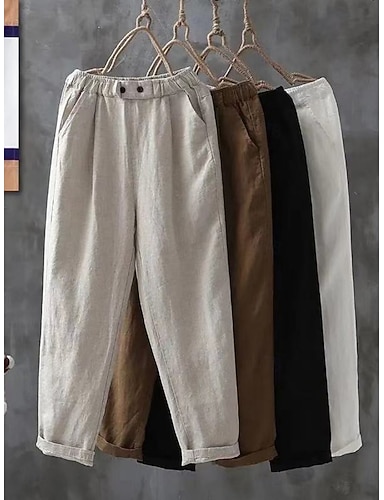 Mujer Pantalones de lino y algodón Pantalones Pantalones de verano Pantalones anchos Vacaciones Básico Casual Hasta el Tobillo Alta cintura Plano Bolsillo Cintura elástica Comodidad Suave Transpirable