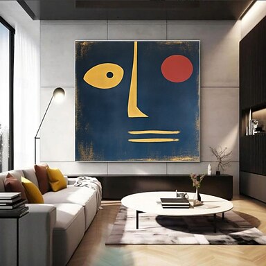 Cuadro abstracto hecho a mano con rostro azul oscuro sobre lienzo, famosas pinturas abstractas sobre lienzo, póster artístico para la decoración de la sala de estar.