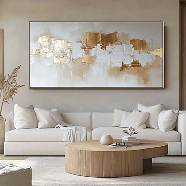 Pintura al óleo hecha a mano sobre lienzo, decoración de pared, moderna, abstracta, con bloques de color dorado, para el hogar. Enrollada, sin marco ni bastidor.