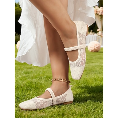 Zapatos Mary Jane de encaje color marfil para mujer con tira elástica, elegantes y cómodos zapatos de boda para novias e invitadas, perfectos para jardín al aire libre. &ceremonias en el césped