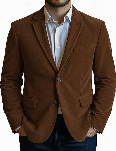 Hombre Chaqueta de Pana Chaqueta americana Cuello de muesca Retro Clásico Casual A Rayas Color sólido Blazer Negro Marrón Verde Trébol A Medida Dos botones de un solo pecho