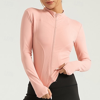 Mujer Color sólido Chaqueta para correr Chaqueta para exteriores Verano Primavera Full Zip Manga Larga Deportivo Secado rápido Ligero Elástico Transpirable Tenis Golf Corriendo Rosa Azul Marino Ropa