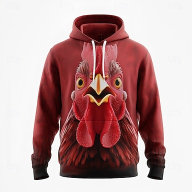 Hombre de impresión en 3D Gallo Sudadera Moda Fresco 3D Manga Larga Cuello Barco Hogar Fiesta Ropa de calle Blanco Rojo Correa Otoño Invierno Diseñador S M L XL XXL XXXL