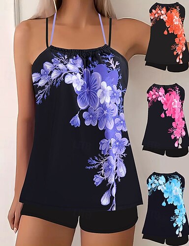 Mujer Bañadores Bikini 2 piezas Bermudas Traje de baño Espalda al Aire Vacaciones Ropa de playa Floral Escote Redondo Sin Mangas Trajes de baño