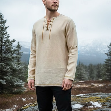 Retro Antiguo Medieval Renacimiento Blusa / Falda Botas Chaleco Caballero Vikingo Ranger élfico Color sólido Disfraz Hombre Pirata Steampunk Rendimiento Mascarada Casual Diario Adulto Camisas