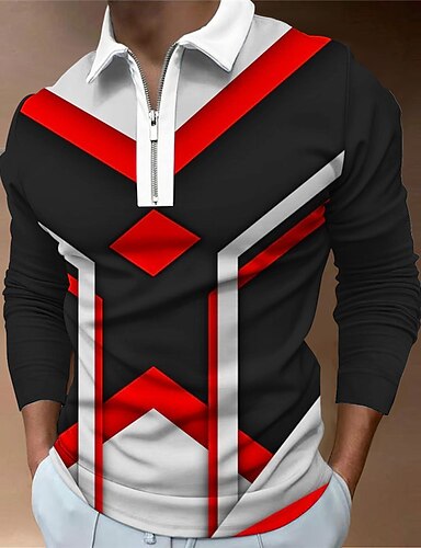 Hombre Geométrico Camisetas polo con cremallera Camiseta de golf Manga Larga Camisas de polo Camisas con cuello Casual Ropa de vacaciones Ropa formal Ropa de festival Impresión 3D Polo con cremallera