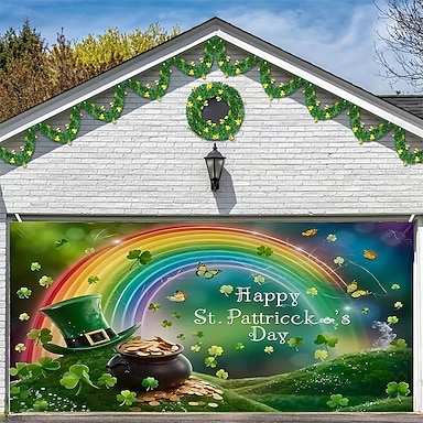Día de San Patricio tapiz Cubierta de puerta de garaje Gran colgante Elfo Estilo lindo 3D Fiesta Al Aire Libre Vacaciones Fondos de disparos Yarda Decoración del hogar